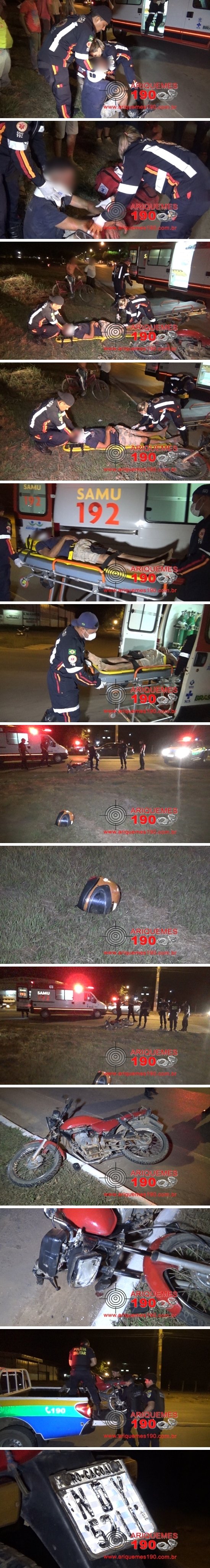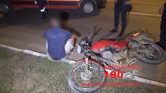 Por volta das 21 horas desta terça-feira (05/07), a equipe do Serviço de Atendimento Móvel de Urgência (SAMU) foi acionada a comparecer na Avenida Capitão Silvio em Ariquemes, pois segundo informações havia ocorrido um acidente de trânsito. De imediato os socorristas se deslocaram até ao local onde se depararam com uma vítima sentada ao solo. No mesmo instante o Samu prestou os primeiros socorros ao motociclista, utilizando o colar cervical e o imobilizando. Segundo informações levantadas no local, o condutor da motocicleta da marca Honda modelo CG Fan de cor vermelha estava transitando pela Avenida Capitão Silvio, momento em que após passar por uma lombada acabou perdendo o controle da direção do veículo vindo em seguida a sofrer uma queda. Após o atendimento pré-hospitalar, a vítima foi encaminhada para o Hospital Regional de Ariquemes. A Polícia Militar foi acionada e compareceu no local onde durante os trabalhos de praxe os Policiais constataram que a moto possuía adulteração em sua placa que pertence a uma motocicleta Suzuki de cor prata.
