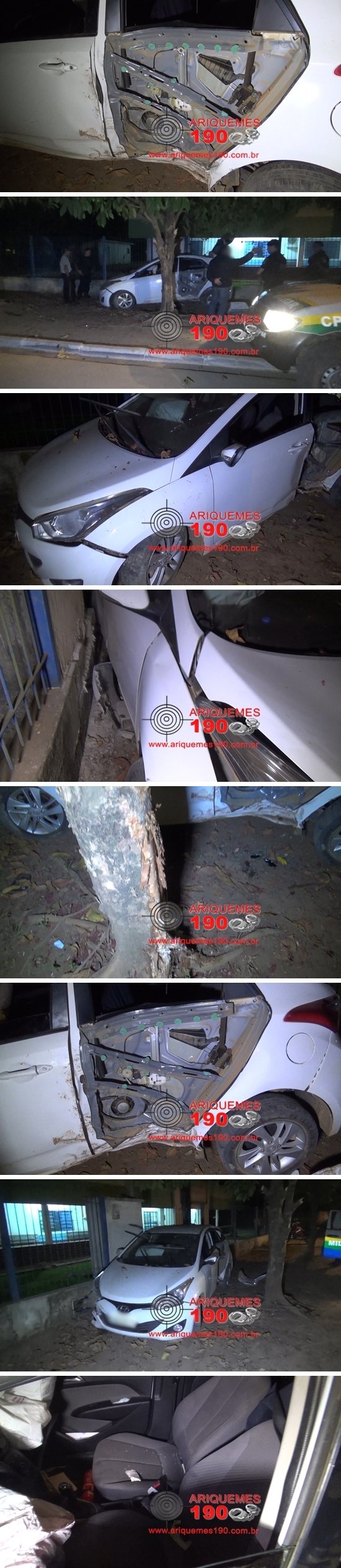 Por volta das 04h45min desta quinta-feira (07/07), uma guarnição da Polícia Militar foi acionada a comparecer na Avenida JK do Setor Institucional em Ariquemes, pois segundo informações um veículo havia colidido com o muro da IDARON. Já no local os Militares constataram a veracidade das informações se deparando com um carro da marca Hiunday, modelo HB 20 de cor branca apresentando bastantes danos materiais devido à colisão com o muro. Segundo o vigia, este relatou que ouviu um barulho e quando foi olhar observou três pessoas saindo do carro. Diante dos fatos, o Boletim de Ocorrência Policial (BOP) de n° 6484/2016 foi registrado na 1ª Delegacia Geral de Polícia Civil de Ariquemes para as devidas providências.