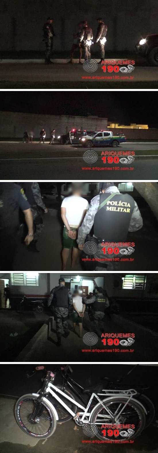 Por volta das 22h00min desta segunda-feira (11/07), as guarnições do Grupo de Operações Especiais (GOE) e da Polícia Militar foram acionadas via Central de Operações a comparecer na Rua Maringá no Bairro Jardim Paraná em Ariquemes, onde segundo informações havia um adolescente detido por populares. De imediato os Policiais se deslocaram até ao local onde em contato com as vítimas foram informados que as mesmas estavam transitando com a motoneta da marca Honda modelo Biz de cor cinza com placa NBE-7914, quando foram surpreendidas por dois infratores os quais estavam em duas bicicletas. Em seguida os indivíduos derrubaram as mulheres do veículo e efetuaram o roubo usando a força física. Os infratores subtraíram de uma das vítimas a motoneta, uma carteira porta cédula de cor vermelha contendo os documentos da vítima, chaves de sua residência, cerca de R$ 1.600,00 reais e da outra vítima subtraíram uma bolsa de cor preta contendo os documentos pessoais da mesma, um celular preto da marca Nokia, um tablet da marca Samsung e aproximadamente R$ 50,00 reais. Após o roubo, um dos indivíduos fugiu com a motoneta e os pertences das vítimas pela Avenida Hugo Frey sentido a BR-364. O adolescente de 14 anos envolvido no roubo tentou fugir em uma das bicicletas, porém foi detido por populares. Diante dos fatos, o menor foi conduzido e apresentado com a companhia do Conselho Tutelar na 3ª Delegacia de Polícia Civil de Ariquemes especializada na Repressão aos Crimes Contra o Patrimônio onde foi registrado o Boletim de Ocorrência Policial (BOP) de n° 2037/2016 para serem tomadas as devidas providências.