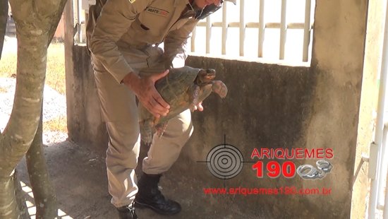 Por volta das 11 horas desta quarta-feira (13/07), uma dona de casa que reside na Rua Panamá, no Jardim América, foi até o portão atender o carteiro e ao olhar para seu lado direito, viu na calçada, encostado junto ao muro um Jabuti. A mulher encheu uma vasilha com água para o Quelônio e acionou o Cabo Ramos e o Bombeiro Ugatti do 2º Sub Grupamento de Bombeiros (SGB), que foram ao local e sem dificuldades resgataram o animal que não ofereceu resistência, pois sua mordida pode ser dolorosa, salientando que os jabutis não têm dentes, mas sim uma placa óssea que funciona como uma espécie de lâmina na parte frontal do maxilar. O bichinho foi levado para a Secretaria de Meio Ambiente (SEMA), onde deverá passar por uma avaliação veterinária e depois será devolvido ao seu habitat natural.
