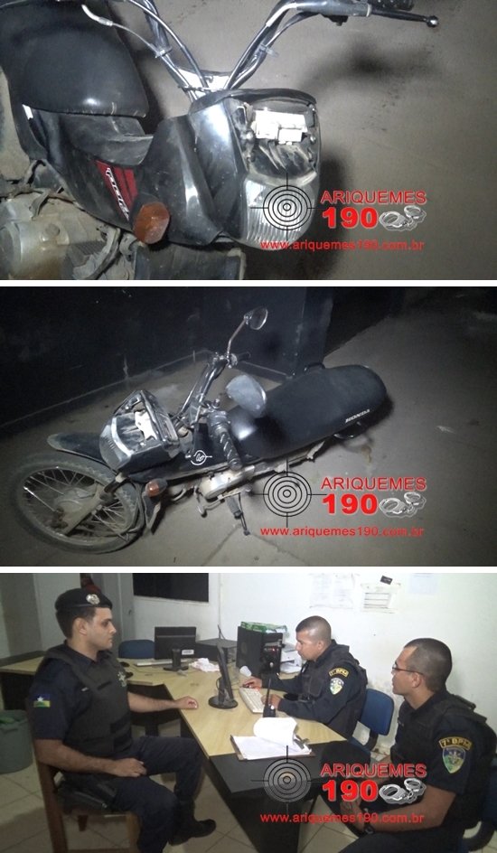 Por volta das 22 horas desta quarta-feira (13/07), uma guarnição da Polícia Militar estava em patrulhamento de rotina pelo Setor 01, momento em que avistou uma motoneta da marca Honda modelo Pop de cor preta com placa NDU-9699. Em pesquisa veicular os Policiais constataram que o veículo havia sido roubado na terça-feira (12/07). Diante dos fatos, a motoneta foi conduzida e apresentada na Delegacia de Polícia Civil de Ariquemes onde foi registrado o Boletim de Ocorrência Policial (BOP) para as providências cabíveis.