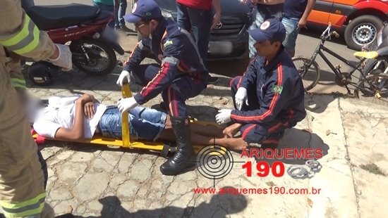 Por volta das 12h30min desta quinta-feira (14/07), as equipes do Corpo de Bombeiros e do Serviço de Atendimento Móvel de Urgência (SAMU) foram acionadas a comparecer na Rua Minas Gerais do Setor 05 em Ariquemes, pois segundo informações havia ocorrido um acidente de trânsito. De imediato as equipes se deslocaram até ao local onde constataram a veracidade das informações se deparando com um adolescente ao solo. No mesmo instante os Bombeiros com o apoio dos socorristas do Samu prestaram os primeiros socorros à vítima, utilizando o colar cervical e a técnica de imobilização. Segundo informações levantadas no local, o condutor do carro da marca Toyota modelo Corolla de cor preta estava transitando pela Rua Mina Gerais, momento em que ao adentrar na garagem de uma residência houve a colisão com uma motoneta da marca Honda modelo Biz de cor vermelha. Após o atendimento pré-hospitalar, a vítima foi encaminhada para o Hospital Regional de Ariquemes para receber atendimento médico especializado.