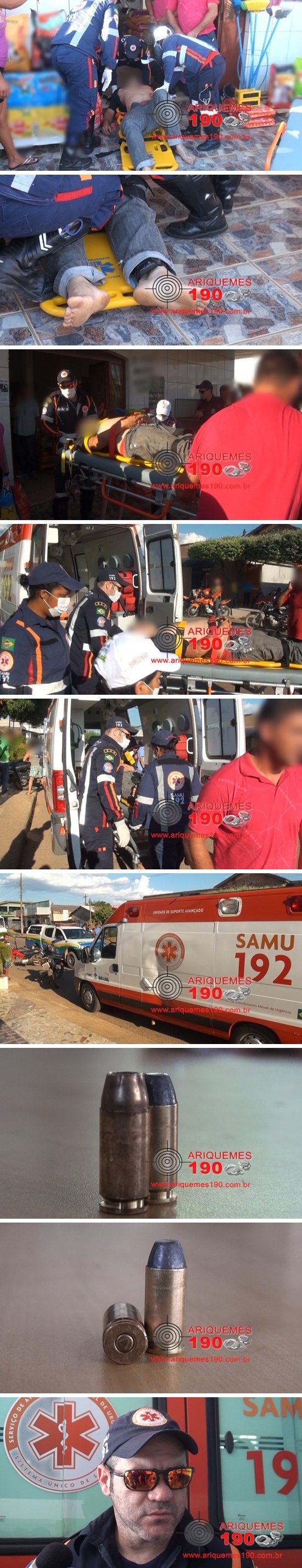 Por volta das 16h20min de quinta-feira (14/07), a vítima G.L.K. de 31 anos, estava chegando a sua loja de aparelhos celulares, localizada na Rua Caçapava, no Setor 09, quando dois indivíduos em duas motocicletas chegaram. Um desceu do veículo e adentrou o estabelecimento, não se sabe se para assaltar ou executar a vítima que reagiu. O homem depois de ser baleado com um disparo de calibre Ponto 40 mm que lhe atingiu o lado esquerdo do tórax, a dois dedos do coração, correu para uma loja de rações do outro lado da rua, onde caiu e foi socorrido por uma ambulância do Serviço de Atendimento Móvel de Urgência (SAMU), que o conduziu ao Hospital Municipal, onde foi constatado através de Raios-X que o projétil desceu e ficou alojado na altura do lado esquerdo da cintura. Uma mulher contou aos Policiais que ao ouvir o estampido provocado pelo disparo, foi ver o que estava acontecendo e avistou a vítima saindo da loja de celulares correndo para o outro lado da rua, em seguida observou um homem branco, com um capacete na mão, trajando camiseta de cor preta também saindo da loja com uma mochila nas costas montando em uma motocicleta Titan vermelha. A vítima ficou internada em estado estável, já que estava consciente e verbalizando com as equipes de socorro. Mediante os fatos a ocorrência nº 219/16, foi registrada na Delegacia de Repressão aos Crimes Contra a Vida, que já está trabalhando no caso.