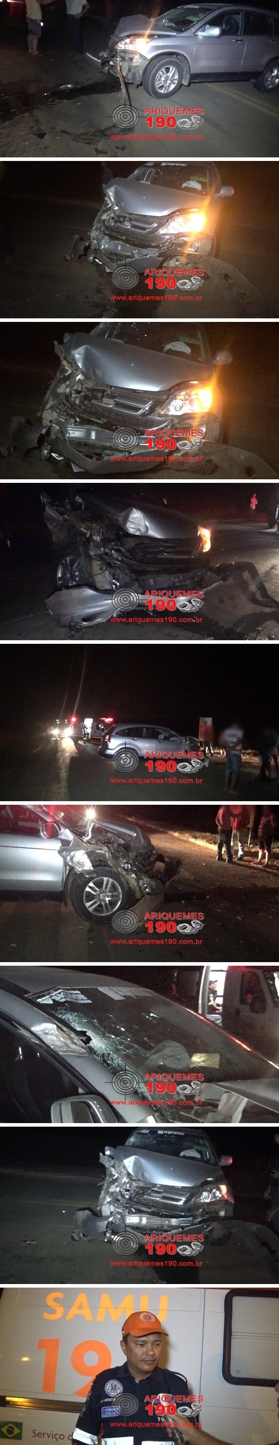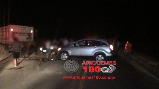 Por volta das 19 horas desta segunda-feira (25/07), a equipe do Serviço de Atendimento Móvel de Urgência (SAMU) foi acionada a comparecer na BR-421, onde segundo informações havia acontecido um acidente de trânsito. De imediato os socorristas se deslocaram até ao local onde se depararam com o condutor do caminhão e o condutor do carro, estes se queixavam de dores causadas pelo impacto da colisão. Após o procedimento de primeiros socorros, os motoristas por não terem sofrido nada de grave se recusaram de ir ao Hospital. Segundo informações levantadas no local, o condutor do carro Honda CR-V de cor prata estava transitando pela BR-421, quando em dado momento acabou chocando com a traseira do caminhão Julieta boiadeiro de cor branco. Com a colisão, a parte frontal do carro ficou destruída. Em entrevista concedida ao Canal 35 e Site Ariquemes 190 o Condutor Socorrista Washington relatou que as vítimas só sentiam pequenas dores, pois as mesmas estavam utilizando o cinto de segurança e o airbag havia sido acionado.