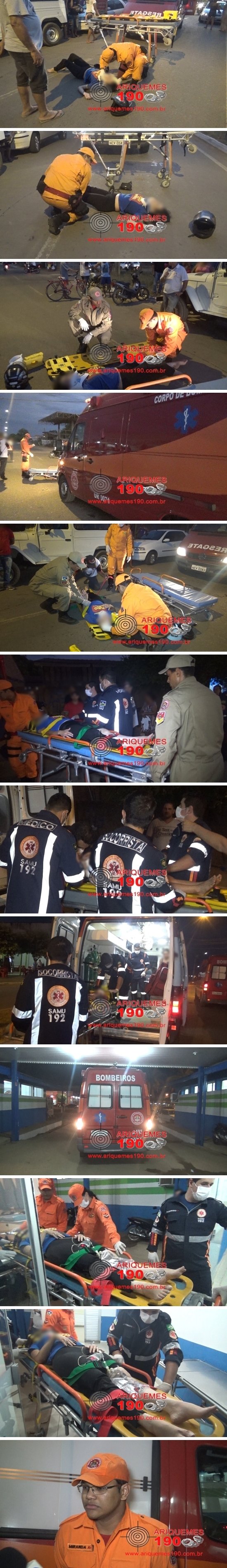 ARIQUEMES: Mulher e crianças ficam feridas após colisão de motos na Av. Machadinho