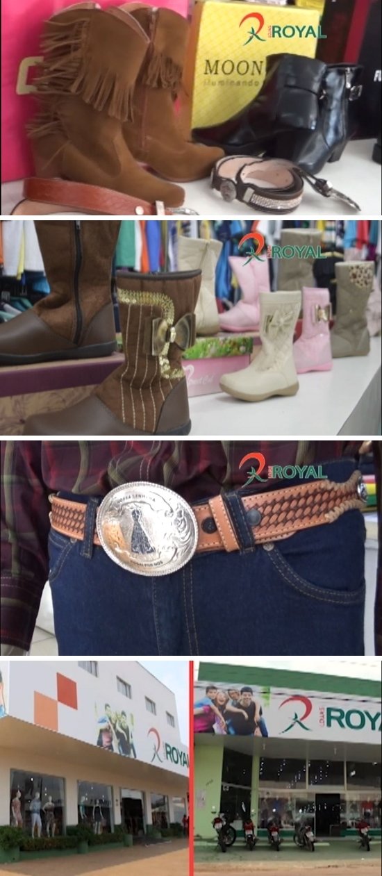 As Lojas Royal preparou para você variedades em botas femininas, masculinas e infantis de várias marcas e modelos, calças jeans masculinas, femininas e infantis, camisete masculino e feminino e cintos. Tudo para você arrasar na Expoari! E na hora do pagamento você pode escolher a melhor opção. Parcele suas compras em 3 vezes para começar a pagar em outubro. 5 vezes para começar a pagar em setembro. 7 vezes direto ou 6 vezes nos cartões de crédito. Agora com duas lojas para melhor lhe atender. Lojas Royal uma sempre perto de você. Alameda do Ipê, nº 1392 e Alameda Piquiá n º 1789, ambas no Setor 01.