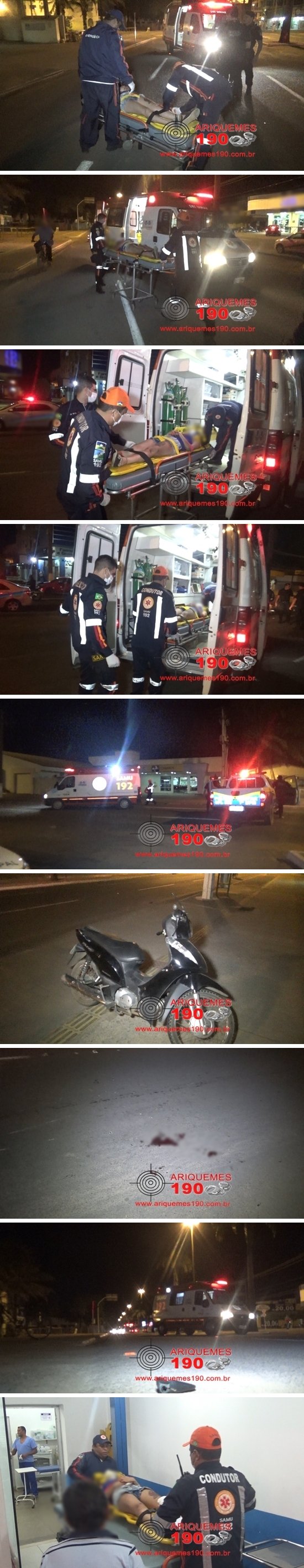 ARIQUEMES: Após passar por quebra molas jovem perde o controle de moto e cai na Av. Tancredo Neves