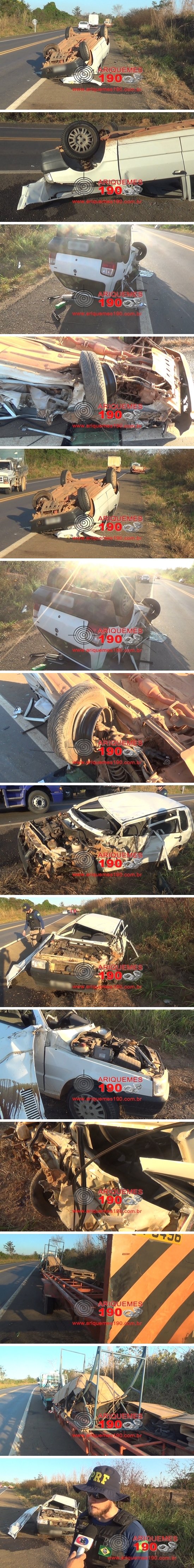 ARIQUEMES: Carro capota após atingir lateral de carreta na BR-364