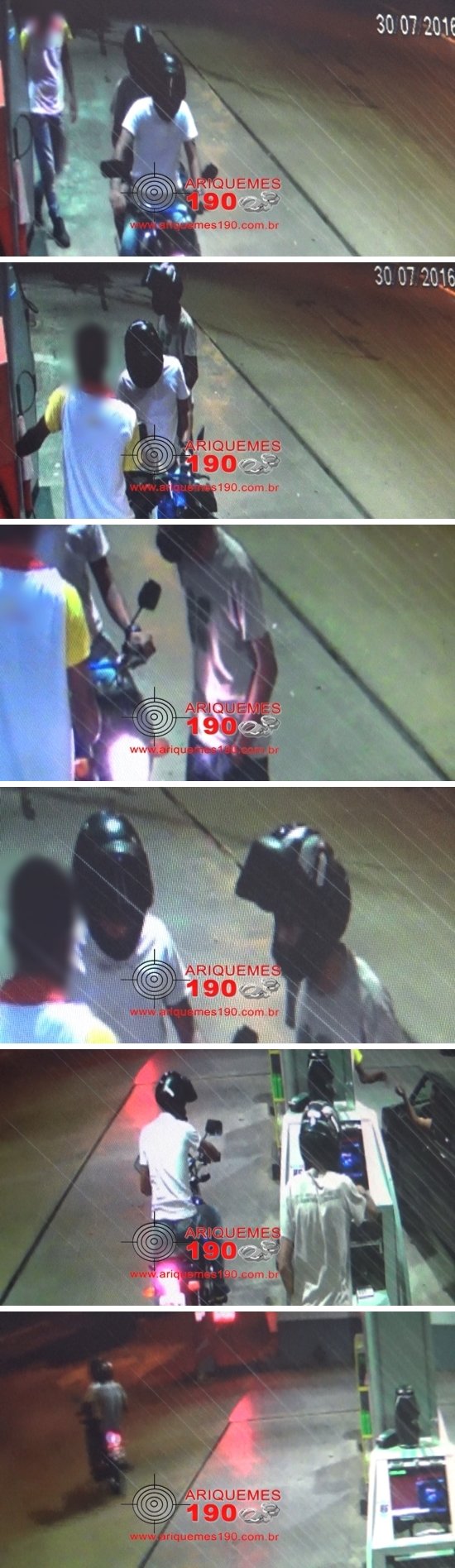 Na noite deste sábado 30/07, por volta das 20h50m, a guarnição da Polícia Militar foi acionada a comparecer na Avenida Guaporé no Setor 06 de Ariquemes, pois segundo informações no local havia acabado de acontecer um roubo. De imediato a guarnição compareceu no local, onde ao chegar entraram em contato com a vítima que relatou o frentista estava trabalhando, momento em que dois elementos morenos e magros se aproximaram em uma motocicleta da marca Honda, modelo Titan de cor azul. Após abastecer a motocicleta, os criminosos em posse de uma arma de fogo anunciaram o roubo e subtraíram aproximadamente R$ 200,00 em espécie. As câmeras de segurança do estabelecimento flagraram toda a ação dos marginais, sendo que as imagens já foram repassadas a Polícia Militar, onde foi constatado que a motocicleta é roubada. Foi registrado o Boletim de Ocorrência Policial (BOP) sob n°2206/2016 na 3ª Delegacia de Polícia Civil de Ariquemes, Especializada em Repressão aos Crimes Contra o Patrimônio, para que sejam tomadas as providências que o caso requer.