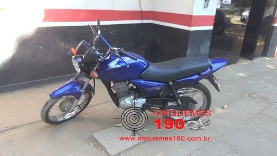 Por volta das 08h30min deste domingo (31/07), os Policiais Militares: Soldado Diego Souza, Soldado Tavares e Soldado Rambo, foram acionados a comparecer na Avenida Guaporé do Bairro Gerson Neco em Ariquemes, onde segundo informações havia um veículo abandonado. Já no local, os Militares constataram através de consulta veicular que a motocicleta da marca Honda modelo Titan de cor azul de placa NDX-7860 era produto de roubo conforme o BOP de n° 2206/2016 registrado na 3ª DPC. Por volta das 20 horas de sábado (30/07), aconteceu um roubo no Posto de Combustível localizado no Setor 06, onde elementos estavam em uma motocicleta com as mesmas características. Diante dos fatos, a moto foi conduzida e apresentada na 3ª Delegacia de Polícia Civil de Ariquemes especializada na Repressão aos Crimes Contra o Patrimônio onde foi registrado o Boletim de Ocorrência Policial (BOP) de n° 2209/2016 para as providências que o caso requer.