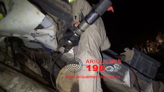No final da tarde de quarta-feira (03/08), o condutor de um caminhão de toras, trafegava pelo Travessão B-30, sentido Linha C-80, quando a ponte de madeira sobre o Rio Sete Voltas não resistiu ao peso do veículo e cedeu, fazendo com que o caminhão caísse em uma ribanceira, localizada a 23 quilômetros de Alto Paraíso nas proximidades da Escola Ribeiro Couto. O “Seu” João que é muito conhecido nas cidades de Alto paraíso e Ariquemes e que conduzia o caminhão, acabou ficando preso pela cabeça e pelo braço esquerdo entre a direção do veículo e o painel. Já era noite quando um agricultor viu o que aconteceu e acionou as equipes de socorro, sendo que para o local foram os Bombeiros Reis e Miranda, comandados pelo Cabo Fábio Osmir de Ariquemes, o Cabo Maximiano e o Sargento Carlos da Polícia Militar de Alto Paraíso e o Doutor Antônio e a Enfermeira Cris, também de Alto Paraíso, além de diversos agricultores e familiares da vítima. Foram mais de duas horas de trabalho dos Bombeiros que utilizaram o Desencarcerador para cortar a lataria da cabine do caminhão para conseguirem chegar ao condutor que permaneceu consciente o tempo todo, reclamando de dores pelo corpo, principalmente no braço esquerdo. O Dr. Antônio que estava no barranco, próximo ao caminhão conversando com a vítima, acabou destroncando um dedo da mão direita, mas permaneceu no local passando instruções para Seu João, que apresentava calma sempre que falava com o médico. Perto das 22 horas a lataria da boleia foi cortada e as equipes finalmente chegaram à vítima, que ainda não estava livre das ferragens, então se iniciou um procedimento arriscado onde foi usada uma Pá Carregadeira da Prefeitura de Alto Paraíso que precisava levantar a cabine mais uns 15 centímetros do solo para que o braço esquerdo de Seu João que continuava preso, fosse solto, mas existia o risco das toras rolarem e arrastarem o caminhão para o rio com a vítima dentro. Familiares de Seu João permaneciam no local abraçados, muito apreensivos e rezando, até que por volta das 22h40min os Bombeiros conseguiram livrar o Seu João das ferragens, mas ainda faltava imobilizar a vítima na Prancha para que pudesse ser conduzido a ambulância com segurança. Os Bombeiros com a ajuda dos Policiais Militares e usando de muito cuidado, conduziram o Seu João à prancha que neste momento estava á beira do barranco onde o Dr. Antônio fez uma análise rápida das condições de saúde de Seu João, que a princípio seria levado para o Hospital Municipal de Ariquemes, mas após a checagem o médico optou por conduzir o Seu João direto para Porto Velho, onde foi acompanhado pela esposa. Ao final da operação de resgate, agricultores que acompanharam e que até ajudaram no desenrolar da ocorrência, cumprimentaram os Bombeiros e os Policiais Militares em reconhecimento aos esforços que tiveram como desfecho o sucesso da missão.