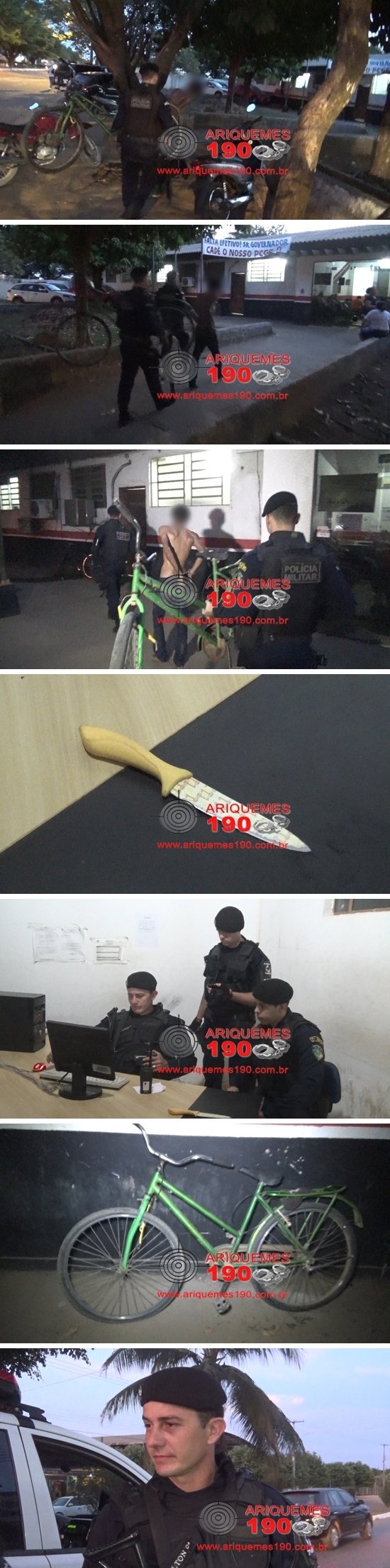Por volta das 18 horas desta segunda-feira (08/08), a guarnição da Força Tática do 7º BPM composta pelos Policiais Militares Cabo Salton, Soldado Dias e Soldado Possamai foi acionada a comparecer em um estabelecimento comercial localizado na Avenida Jaru do Setor 03 em Ariquemes, onde segundo informações o autor de um roubo havia sido detido por populares. Já no local, os Policiais constataram a veracidade das informações se deparando com o elemento que se encontrava imobilizado, pois suas mãos e pés estavam amarrados com uma corda e o mesmo estava deitado ao solo. Segundo o infrator, este relatou aos PMS que foi até ao comércio junto com um colega e em posse de uma faca anunciaram o roubo. Após o crime, a dupla tentou se evadir do local em uma bicicleta de cor verde, contudo, populares que notaram a ação dos marginais se revoltaram, perseguiram a dupla e conseguiram capturar um dos meliantes. O outro larápio conseguiu fugir, porém os cidadãos que detiveram o elemento conseguiram recuperar o dinheiro roubado e devolver à vítima. Diante dos fatos, o indivíduo, a faca e a bicicleta foram conduzidos para a 3ª Delegacia de Polícia Civil de Ariquemes especializada na Repressão aos Crimes Contra o Patrimônio onde foi registrado o Boletim de Ocorrência Policial (BOP) de n° 2283/2016, para as devidas providências cabíveis.