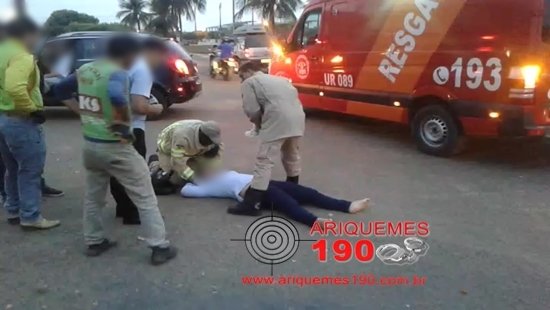 ARIQUEMES: Mulher quebra a perna em colisão de duas Biz na Av. Tancredo Neves