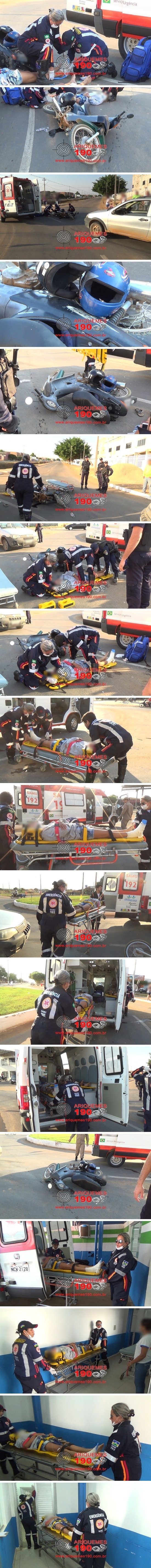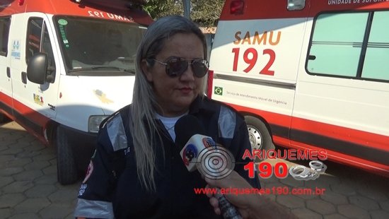 Por volta das 07h30min desta quinta-feira (11/08), a equipe do Serviço de Atendimento Móvel de Urgência (SAMU) foi acionada a comparecer na rotatória da Avenida Machadinho com a Avenida JK em Ariquemes para atender uma ocorrência de acidente de trânsito. Já no local, os socorristas se depararam com as vítimas sentadas ao solo, sendo uma criança e uma mulher. Imediatamente o SAMU prestou os primeiros socorros às vítimas, sendo utilizado o colar cervical para a imobilização e o pranchamento das vítimas. Segundo informações levantadas no local, a condutora da motoneta da marca Honda modelo Biz de cor preta estava transitando pela rotatória com sua filha na garupa, quando em dado momento houve uma colisão com o carro da marca Fiat modelo Strada de cor prata. Após o atendimento pré-hospitalar (APH), a mulher e a criança foram encaminhadas para o Pronto Socorro do Hospital Regional de Ariquemes. Em entrevista concedida ao Canal 35 e Site Ariquemes 190 a Técnica de Enfermagem Simone relatou que a criança apresentava uma escoriação leve no joelho direito e a mãe se queixava de muita dor no pé, de modo que há a possibilidade de a mulher ter fraturado o mesmo.