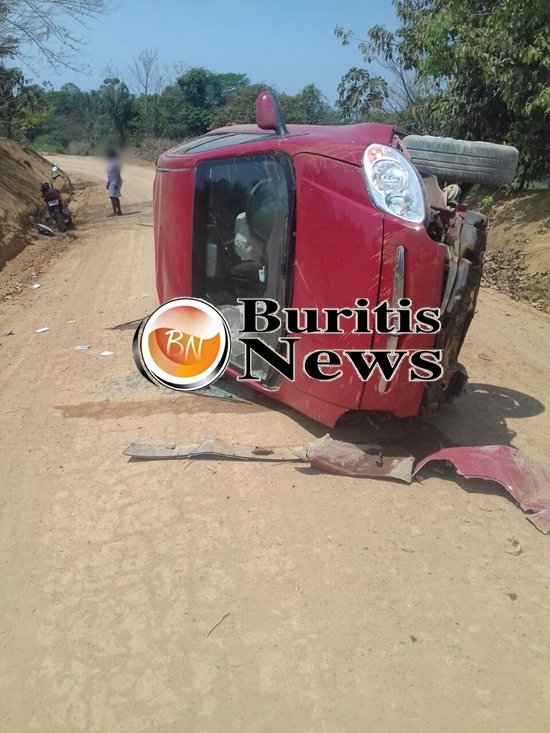 BURITIS: Condutor perde controle de carro e capota na Linha C-35