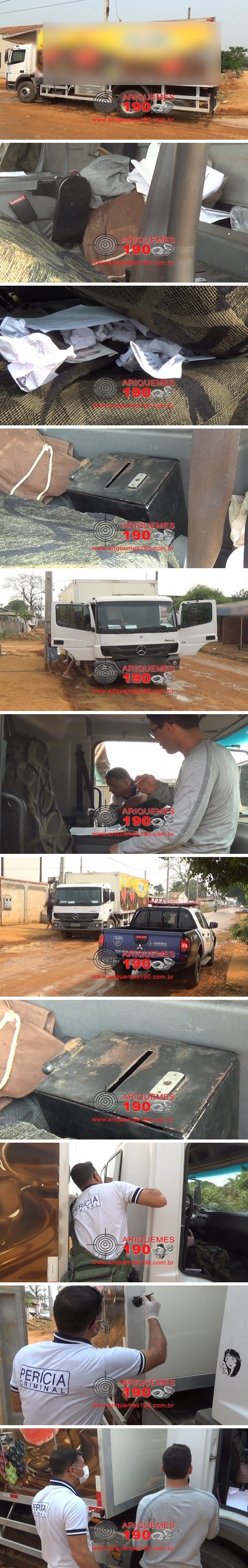 Por volta das 01h30min da manhã desta sexta-feira (26/08), o motorista R.M.C. de 27 anos, deixou um caminhão da marca Mercedes Benz, modelo Atego 1719 de cor branca, com placas de Cacoal estacionado nos fundos de um hotel na Rua Uirapuru, Setor 02 de Ariquemes e foi dormir. Perto das 07h30min a vítima foi ver se a temperatura do baú refrigerado carregado com picolés e sorvetes estava ideal e percebeu que alguém havia arrombado a porta e quebrado tranca do cofre, de onde subtraíram a quantia de R$ 10.090,00 em dinheiro. A Polícia Técnico-Científica (Politec) realizou os trabalhos periciais com a coleta de impressões digitais e em seguida a vítima registrou a ocorrência nº 8523/16, na Delegacia Geral, que já está trabalhando no caso.