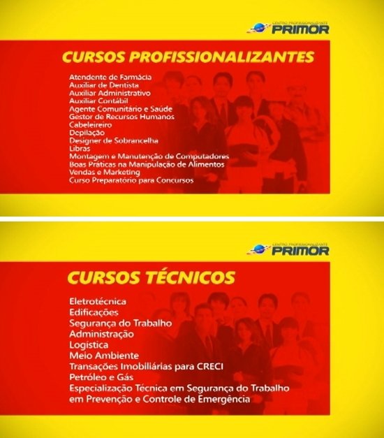 O Centro Profissionalizante Primor é a garantia de futuro de sucesso! O Centro Profissionalizante Primor oferece vários cursos técnicos e profissionalizantes, confira: