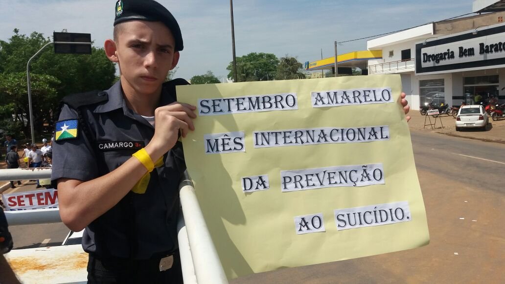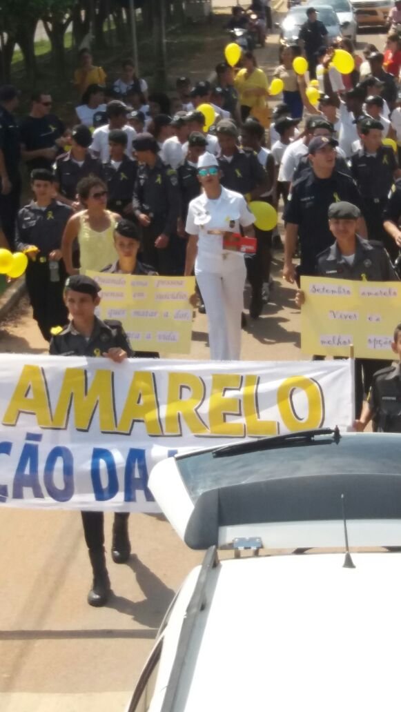 O Setembro Amarelo é uma campanha de conscientização sobre a prevenção do suicídio, com o objetivo direto de alertar a população a respeito da realidade do suicídio no Brasil e no mundo e suas formas de prevenção. O 7º BPM em preocupação a tal fenômeno, que segundo a Organização Mundial da Saúde (OMS) está entre as 10 causas de morte mais frequentes em muitos países, estando o Brasil ocupando o oitavo lugar no ranking de números de suicídios, mobilizou a sociedade numa passeata realizada nas principais ruas de Ariquemes. Participaram da passeata a Guarda Mirim do 7º BPM, Secretaria de Educação Municipal através da Escola Municipal Roberto Turbay, Centro de Apoio Psicossocial – CAPS, Gerência Regional de Saúde, Faculdade Associadas de Ariquemes – FAAR, Faculdade de Educação e Meio Ambiente – FAEMA e policiais militares lotados no 7º BPM.