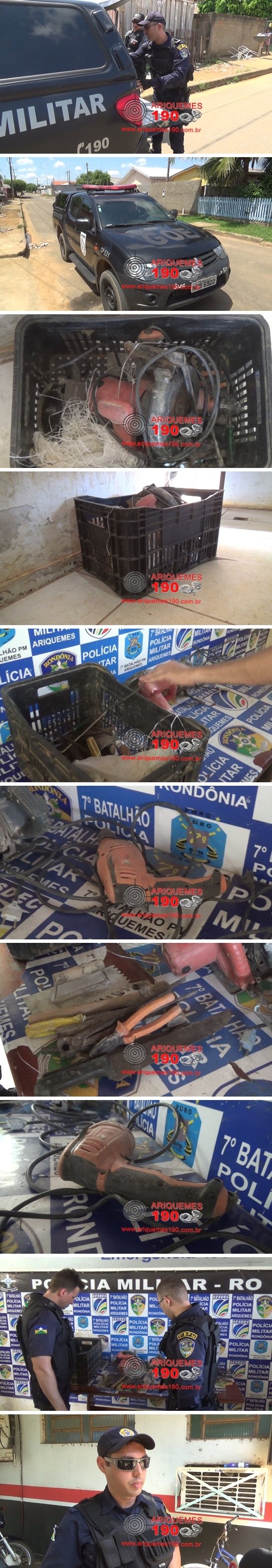 Por volta das 10 horas desta quarta-feira (28/09), um homem chegou em uma construção, localizada na Rua Apucarana do Bairro Jardim Paraná, para trabalhar e deu a falta de algumas ferramentas. Após a Polícia Militar comparecer no local e fazer a coleta de dados, a vítima decidiu transitar pela cidade, momento em que ao chegar à Rua Vimbere com a Avenida Tabapuã do Setor 04, a mesma avistou um indivíduo suspeito carregando um saco branco. Ao ser constatado que o elemento estava com grande parte do seu material furtado, a vítima acionou a Polícia, onde ficou segurando o indivíduo até a chegada da PM. O infrator levou os Policiais: Bruno, Henrique e Debastiani até a 3ª Rua do Setor Colonial, pois ali estaria o restante das ferramentas furtadas. Quando os Militares chegaram ao local constataram a veracidade dos fatos, ao se depararem com as ferramentas espalhadas na casa de um indivíduo. Durante as buscas pelos objetos furtados, os Policiais avistaram um sujeito saindo da casa vizinha com uma bicicleta de cor laranja e preto, onde foi apurada que a mesma havia sido furtada minutos antes em um mercado. Segundo o infrator, este relatou que comprou o veículo de uma mulher pelo valor de R$ 20,00. Diante dos fatos, a dupla recebeu voz de prisão e foi conduzida juntamente com os objetos furtados para a 3ª Delegacia de Polícia Civil de Ariquemes especializada na Repressão aos Crimes Contra o Patrimônio onde foram registrados os Boletins de Ocorrência Policial (BOP) de n° 2708/2016 e 2709/2016, para as devidas providências que o caso requer.