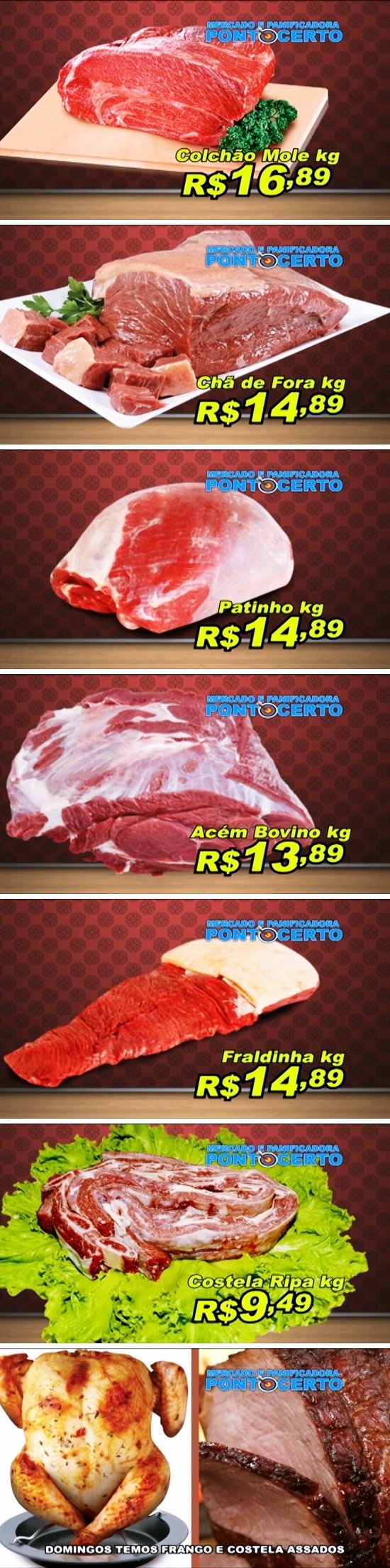 Aos domingos o Mercado e Panificadora Ponto Certo oferece frango e costela assados. Venha para o ponto certo da sua economia. Localizado na Avenida Jaru do Setor 08. Telefone: 3535-3025.