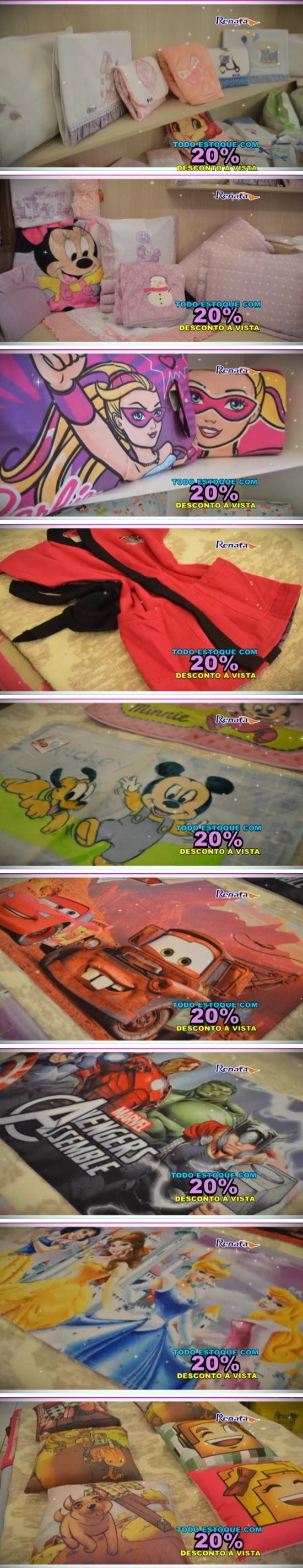 Venha conferir a quinzena especial para os baixinhos da Renata Enxovais. Todo o estoque com 20% de desconto à vista para presentear no mês das crianças. Variedades em jogos de lençóis, roupões, toalhas de banho, tapetes nos personagens masculinos e femininos, lindas capas de almofadas e pijamas masculinos e femininos. No mês das crianças presenteie com Renata Enxovais, vestindo de moda a sua casa. Na Alameda do Ipê, Travessa Maracatiara, telefone: 3535-3482 / 8413-6453.