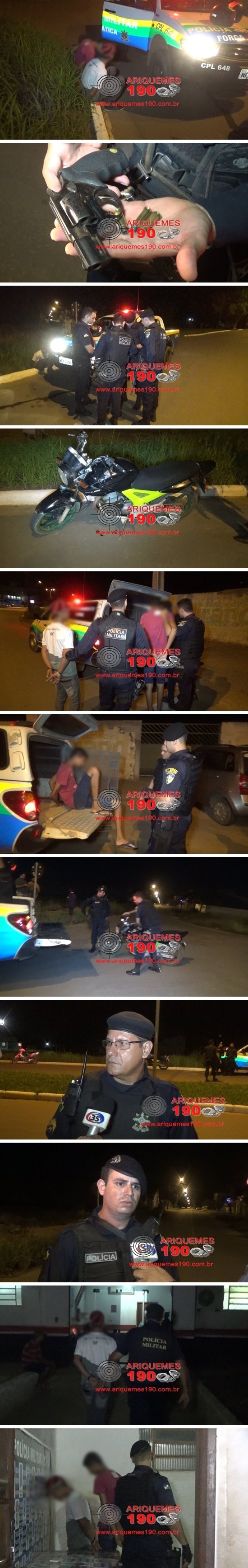 Por volta das 21h30min de sexta-feira (07/10), um indivíduo de 15 anos, foi apreendido pelos Policiais Militares: Antônio Marcos, Marcos Castro e Marcelo portando uma arma de fogo do tipo revólver calibre 38 mm com duas munições intactas, na Avenida Jaru, esquina com Rua Paraná, no Setor 05 depois de intensa perseguição pelas Ruas e Avenidas da cidade, pois o menor estava com o comparsa A.J.O. de 18 anos, em uma motocicleta da marca Honda, modelo CBX Twister com placa de Ariquemes. O menor foi apresentado à autoridade plantonista na Delegacia de Patrimônio conforme a ocorrência nº 2768/16 e em seguida retornou ao patrulhamento de rotina nas ruas de Ariquemes. Perto das 03 horas da madrugada deste sábado (08/10), a mesma guarnição fazia ronda pela Rua Érico Veríssimo, no Setor Colonial, quando avistaram o menor carregando uma bolsa de bebê. Ao ver a viatura o menor jogou a bolsa no chão e saiu correndo, sendo acompanhado pelos Policiais que depois de muito trabalho alcançaram a criança que reagiu contra os Policias, que precisaram usar técnicas de imobilização para conter o indivíduo, que estava usando a mesma roupa quando foi apreendido com a arma de fogo. O menor disse que tinha furtado a bolsa em uma residência, sendo que a vítima G.A.M. de 43 anos foi chamada pelos Policiais e percebeu que a porta dos fundos de sua residência havia sido arrombada e que tudo estava revirado dentro da casa, momento em que reconheceu a bolsa de bebê como sendo de sua propriedade. O menor foi novamente apresentado à autoridade plantonista, dessa vez na Delegacia de Repressão aos Crimes Contra o Patrimônio, onde foi registrada a ocorrência nº 2771/16, para as medidas cabíveis.