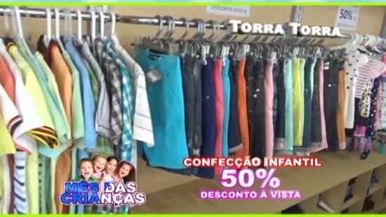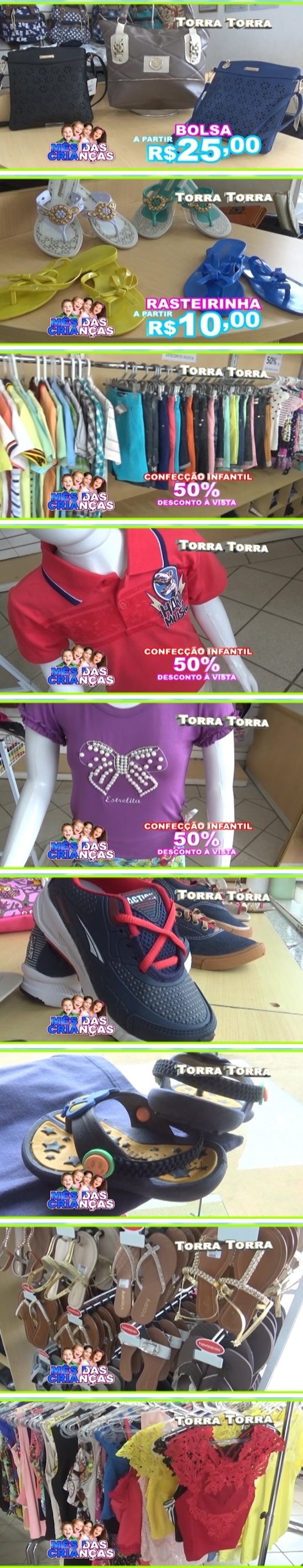 No mês das crianças o Torra Torra traz para você uma promoção incrível para presentear os baixinhos. Todo o estoque de confecção infantil com 50% de desconto à vista. O Torra Torra está com diversas novidades em calçados infantis. Além de lindas bolsas a partir de R$ 25,00, rasteirinhas a partir de R$ 10,00, entre outras opções em calçados e confecções. Faça já uma visita ao Torra Torra, torrando os preços altos. Localizado na Alameda Piquiá, Centro. Telefone: 3536-5152.