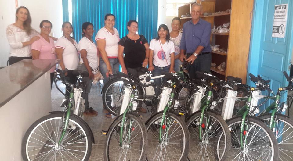 Bicicleta Elétricas, aro 26, , equipada com cestões e bagageiro, potencia mínima de 250w, velocidade mínima de 20 km/h, desempenho mínimo de 30 km com a bateria carregada ou 4 horas. Bateria recarregável, o clima foi só de alegria a dois anos atrás recebi esse pedido em uma festa de comemoração ao aniversario do município,o deputado destinou o recurso de 45 mil reais para compra, a demora se deu por vários motivos, o mais importante e que a entrega virou realidade Para tornar o trabalho mais ágil e aumentar a qualidade do serviço prestado à população, além da valorização dos agentes comunitários de saúde, peça fundamental na conquista de uma saúde mais eficiente e de resultados”, declarou o deputado Adelino Follador