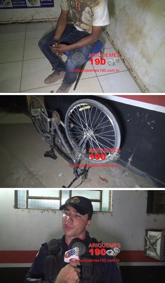 Por volta das 06 horas da manhã deste sábado, (15/10), um elemento ignorado adentrou uma residência localizada na Avenida Quatro Cachoeiras, Setor 04 em Ariquemes e entre outros objetos furtou uma bicicleta. A vítima que é funcionário da SEMA saiu a procura de seus bens, quando foi informado por populares que um indivíduo havia sido visto com uma bicicleta com as mesmas características da que havia sido furtada, sendo que um dos populares seguiu o suspeito até a Rua Rubens Paiva, no Setor 08. De posse das informações e com o endereço do suspeito a vítima acionou os Policiais Militares: Vasconcelos, Paulo Ricardo e Rambo, que foram para o endereço indicado e localizaram o indivíduo T.O.C. de 32 anos, sendo que na varanda da residência a referida bicicleta foi encontrada. Vítima e suspeito foram apresentados à autoridade plantonista na Delegacia de Repressão aos Crimes Contra o Patrimônio, onde foi registrada a Ocorrência nº 2823/16, para as devidas providências serem encaminhadas.