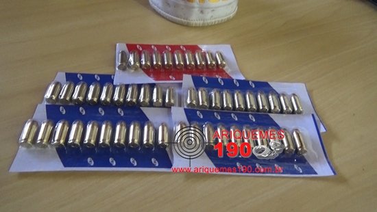 Por volta das 10h45min desta quarta-feira (19/10), a guarnição da Patrulha de Trânsito (PTran) da Polícia Militar estava em patrulhamento pela Avenida Capitão Silvio, quando se deparou com um indivíduo que conduzia uma motoneta da marca Honda modelo Pop-100 o qual ao avistar os Policiais aumentou a velocidade do veículo. Diante da situação, os Militares abordaram o rapaz e no momento em que foram revistar o veículo, os Policiais localizaram dentro do banco da motoneta um embrulho de jornal. Após desembrulhar, os PM’s encontraram cinco cartelas, sendo que cada uma delas continha dez munições de Calibre .380 e uma das cartelas estava violada. Segundo o infrator, este relatou que não tinha conhecimento do embrulho, pois o mesmo não era proprietário da moto. Em contato com o dono do veículo, os Policiais foram informados que apenas emprestou o veículo para o rapaz, mas não sabia de nenhum embrulho. Novamente ao ser questionado, o indivíduo mudou sua versão, sendo que desta vez afirmou que as munições eram suas e que teria comprado na noite de terça-feira pelo valor de R$ 150,00 para revender posteriormente. Diante dos fatos, os envolvidos foram conduzidos e apresentados na Delegacia Geral de Polícia Civil de Ariquemes onde foi registrado o Boletim de Ocorrência Policial (BOP) de n° 10481/2016, para serem tomadas as devidas providências que o caso requer.