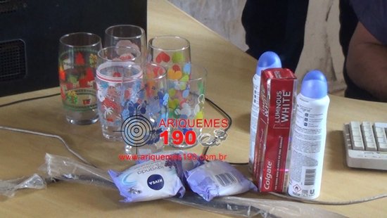 Por volta das 09h15min deste sábado (22/10), uma guarnição da Polícia Militar foi acionada a comparecer em um estabelecimento comercial na Avenida Jamari, Setor 01 em Ariquemes para atender uma ocorrência de furto. De imediato os Policiais se deslocaram até ao local, onde ao entrar em contato com a vítima foram informados que uma mulher havia furtado diversos objetos da loja e colocado em sua bolsa, sendo que minutos depois ao tentar sair da loja foi detida por funcionários. No interior da bolsa da mulher foram encontrados sabonetes, copos de vidro, desodorantes, lâmina de barbear, creme dental e algumas peças de roupas. Segundo informações coletadas no local, a infratora apresenta problemas psicológicos. Diante dos fatos, a mulher foi conduzida e apresentada na Delegacia de Polícia Civil de Ariquemes onde foi registrado o Boletim de Ocorrência Policial (BOP), para as providências cabíveis.