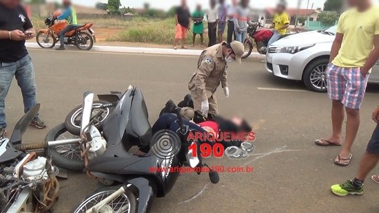 No inicio da manhã desta segunda-feira (24/10), o Corpo de Bombeiros foi acionado a comparecer na Avenida Jamari em Ariquemes para atender uma ocorrência de acidente de trânsito. De imediato os Bombeiros se deslocaram até ao local, onde se depararam com duas vítimas feridas, sendo uma mulher e um homem. Diante da situação, os Bombeiros solicitaram apoio da equipe do Serviço de Atendimento Móvel de Urgência (SAMU), a qual imediatamente compareceu ao local. Rapidamente as equipes prestaram os primeiros socorros às vítimas, sendo realizados os procedimentos de praxe. Segundo informações coletadas no local, o condutor da motocicleta da marca Honda modelo Bros de cor preta transitava pela via, quando ao realizar o retorno veio a colidir-se com a condutora da motoneta da marca Honda modelo Biz de cor preta. Uma guarnição da Polícia Militar compareceu ao local, onde esteve realizando a coleta de dados e prestando apoio às equipes do Samu e dos Bombeiros. Após o atendimento pré-hospitalar prestado aos motociclistas, ambos foram encaminhados para o Hospital Regional de Ariquemes, para receber atendimento médico especializado. Em entrevista concedida ao Canal 35 e Site Ariquemes 190 o Cabo Wudarski relatou que ambas as vítimas estavam conscientes. A mulher estava com sangramento nasal e o homem estava se queixando de fortes dores na região da perna. Segundo Dr. Menezes, este relatou que a mulher apresentava um corte profundo e bastante sangramento na face, devido à mesma ter sofrido uma fratura no dente.