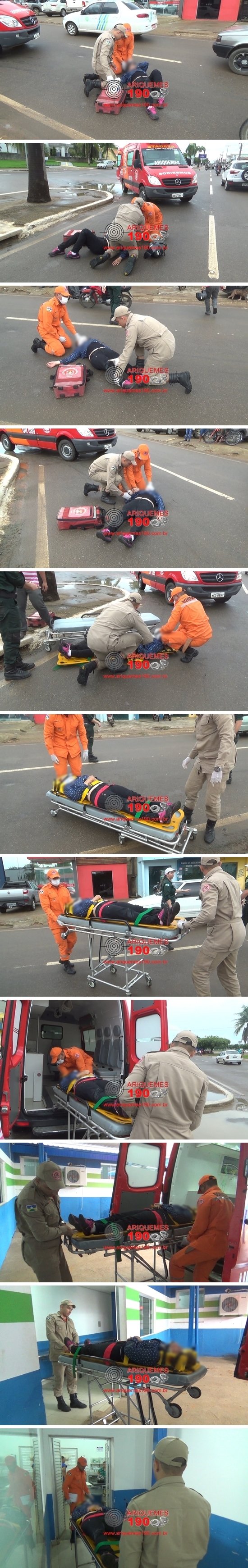 Por volta das 07h45min desta quinta-feira (03/11), o Corpo de Bombeiros foi acionado a comparecer na Avenida Tancredo Neves em Ariquemes, pois segundo informações havia acontecido um acidente de trânsito. De imediato os Bombeiros se deslocaram até ao local, onde se depararam com uma mulher caída ao solo. Rapidamente os Militares prestaram os primeiros socorros à vítima, sendo realizados os procedimentos de praxe. Segundo informações coletadas no local, a condutora da motoneta da marca Honda modelo Biz de cor prata estava transitando pela via, quando para não colidir com outro veículo freou bruscamente, momento em que derrapou na pista molhada e sofreu uma queda. Após o atendimento pré-hospitalar (APH) prestado à vítima pelo Corpo de Bombeiros, a mesma foi encaminhada para o Hospital Regional de Ariquemes para receber atendimento médico especializado.