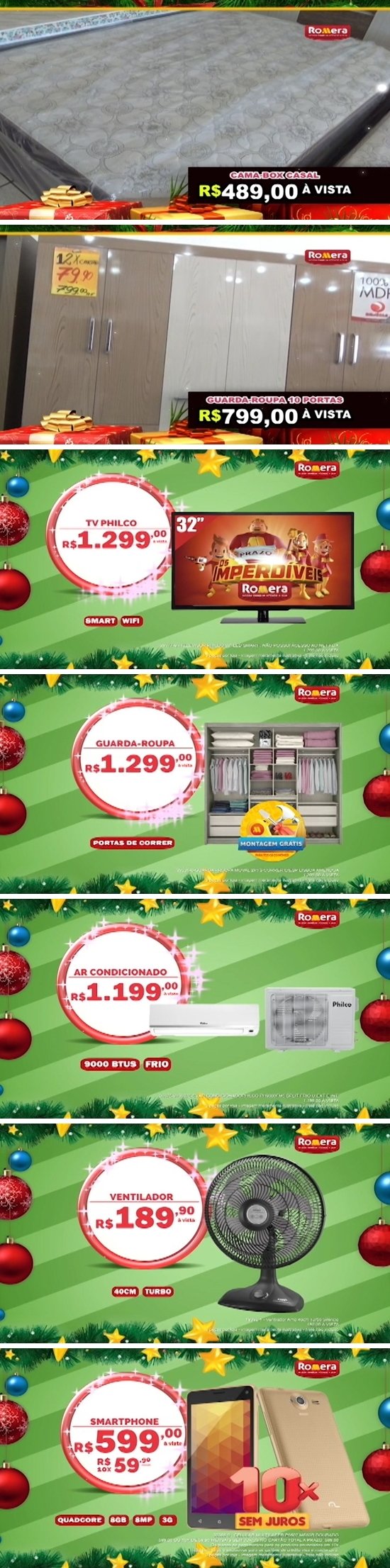 Ofertas válidas até dia 07/11/2016. Venha economizar com o Natal Antecipado da Romera. Romera, nossa família atende a sua. São três lojas para melhor te atender, Localizadas na Av. Tancredo Neves. Telefone: (69)3536-3424 ou (69) 3536-0856 e Al. Piquiá (69)3536-5778.