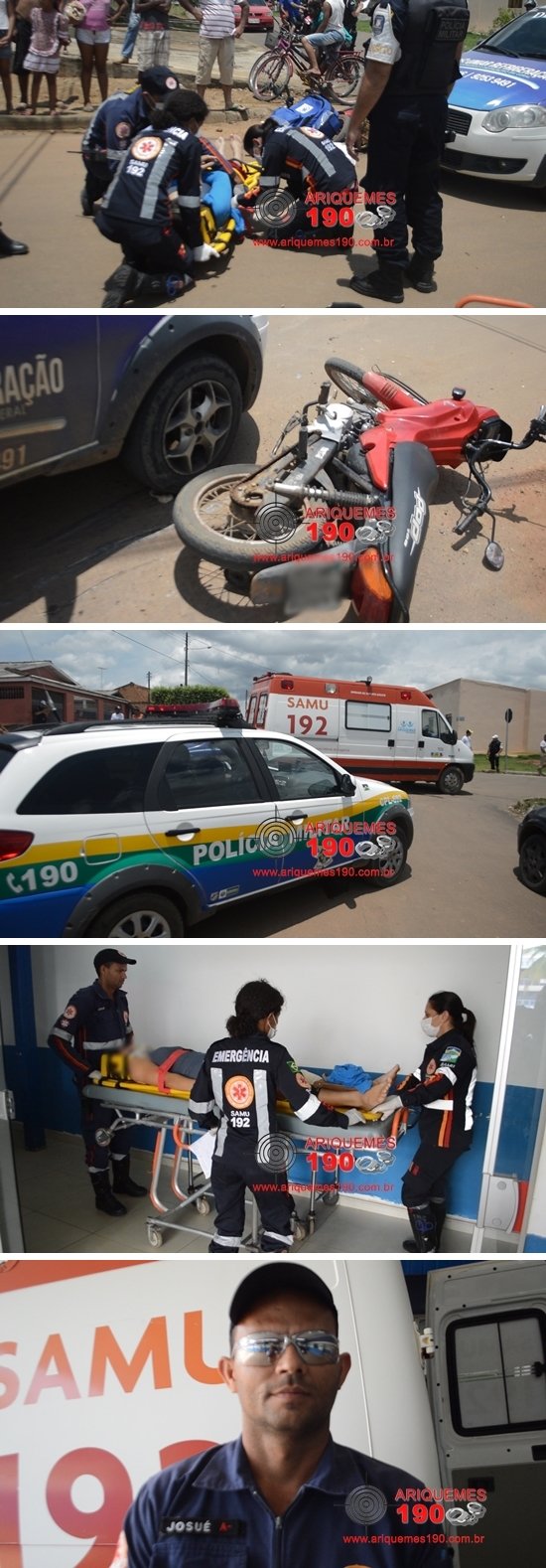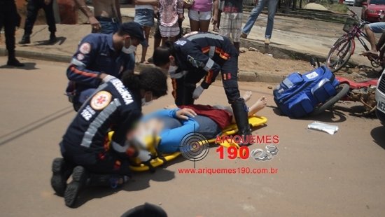 Por volta das 12 horas deste sábado (05/11), a equipe do Serviço de Atendimento Móvel de Urgência (SAMU) foi acionada a comparecer na Rua Gavião Real com a Rua Umuarama do Setor 09 em Ariquemes para atender uma ocorrência de acidente de trânsito. De imediato os socorristas se deslocaram até ao endereço, onde se depararam com uma mulher caída ao solo. Rapidamente o SAMU prestou os primeiros socorros à vítima, sendo realizados os procedimentos de praxe. Segundo informações coletadas no local, a condutora da motoneta da marca Honda modelo Pop de cor vermelha estava transitando na via, quando em dado momento houve a colisão com o carro da marca Fiat modelo Strada de cor branca. Uma guarnição da Polícia Militar compareceu ao local onde esteve controlando o trânsito e realizando a coleta de dados. Após o atendimento pré-hospitalar (APH), a motociclista foi encaminhada para o Hospital Regional de Ariquemes para receber atendimento médico especializado. Em entrevista concedida ao Canal 35 e Site Ariquemes 190 o Condutor Socorrista Josué relatou que a vítima apresentava um corte no membro inferior.