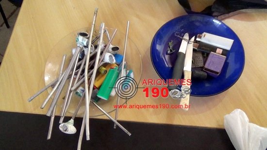 Por volta das 09 horas desta sexta-feira (25/11), os Policiais Militares: Werley, Ronaldo, Eurich, Vieira e Rosineide encontravam-se na Operação Visibilidade comandada pelo Tenente Cantanhede, quando em abordagem na Praça da Rodoviária localizaram diversas pessoas em atitude suspeita. Durante abordagem e revista pessoal os Policiais encontraram dois indivíduos fazendo uso de substância entorpecente em um prato de vidro transparente. Em outro lugar da Praça, a guarnição localizou mais dois sujeitos que consumiam substância entorpecente em um prato de vidro de cor azul. Os Policiais apreenderam 12 cachimbos, três isqueiros e duas armas brancas. Diante dos fatos, três homens e uma mulher foram conduzidos juntamente com o material apreendido até a Delegacia Geral de Polícia Civil de Ariquemes onde foi registrado o Boletim de Ocorrência Policial (BOP) de n° 11135/2016, para as devidas providências que o caso requer.