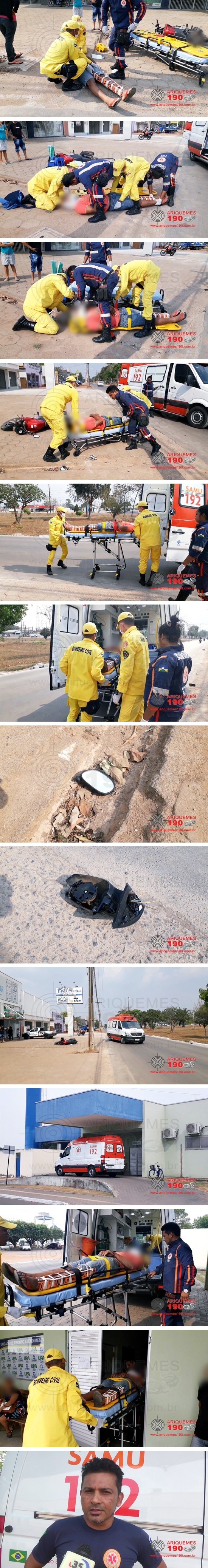 Por volta das 11 horas desta segunda-feira 19/12, a guarnição do Corpo de Bombeiros foi acionada a comparecer na Avenida Machadinho no Setor 06 de Ariquemes, pois segundo informações, no local havia acontecido um acidente de trânsito. De imediato os Militares se deslocaram até o local, onde constataram a veracidade da informação, se deparando com um motociclista caído no canteiro central apresentando escoriações pelo corpo. Rapidamente os Bombeiros Sargento Silveira e Soldado Ismalen iniciaram os procedimentos de primeiros socorros e imobilização, em seguida a vítima foi conduzida ao Pronto Socorro do Hospital Municipal, para receber atendimento médico especializado. Segundo populares, o motociclista trafegava pela Avenida, quando em dado momento acabou colidindo com a traseira do veículo da marca Fiat, modelo Uno de cor preta. Graças ao fato de o motociclista estar transitando com a velocidade adequada, no momento da queda, o jovem sofreu apenas leves escoriações. Em entrevista ao Canal 35 para o Programa Bronca da Pesada, o Sargento Silveira relatou que aparentemente a vítima não apresentava nenhum ferimento grave.