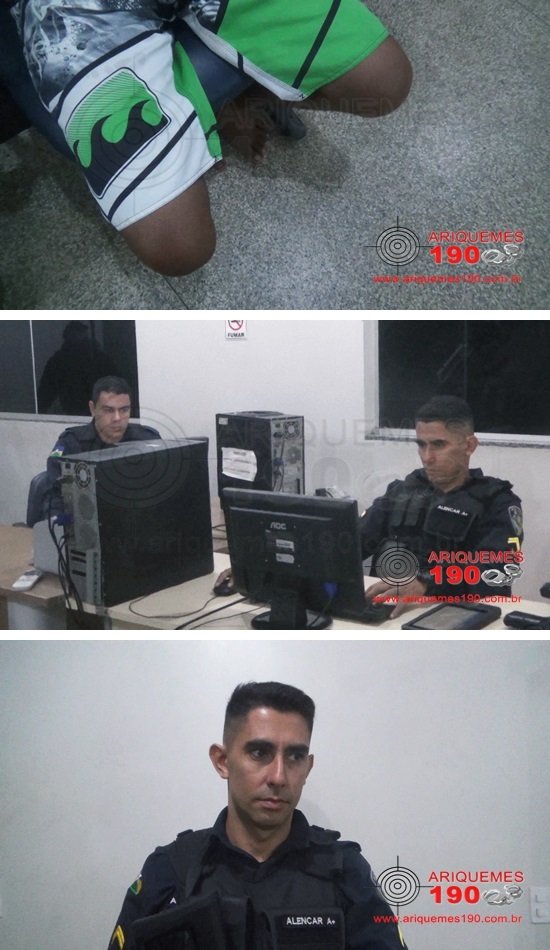 Na noite desta quarta-feira 21/12, por volta das 20 horas, a guarnição da Força Tática da Polícia Militar foi informada via Central de Operações, que um elemento de shorts jeans e camisa vermelha em uma motocicleta da marca Honda, modelo NXR 160 estava comercializando droga na Praça da Rodoviária. Durante o deslocamento, os Militares avistaram um elemento em uma motocicleta com as mesmas características repassadas pela Central. Ao ver o giroflex da viatura ligado, o marginal empreendeu fuga em alta velocidade pulando canteiros das avenidas e colocando a vida de muitos pedestres em risco. Em dado momento, o marginal colocou a mão na cintura fazendo menção atirar contra a guarnição. No intuito de cessar a fuga e evitar a agressão, um dos policiais efetuou um disparo que fez o elemento parar a moto. Com o marginal foi localizado um revólver cabl.38 com 5 munições intactas, 17 invólucros de substância entorpecente aparentando ser crack e R$ 265,00 em notas trocadas. Diante dos fatos, o elemento foi conduzido a 1ª Delegacia Geral de Polícia Civil de Ariquemes, onde foi registrado o Boletim de Ocorrência Policial (BOP), sob n°11560/2016, para a tomada de providências.