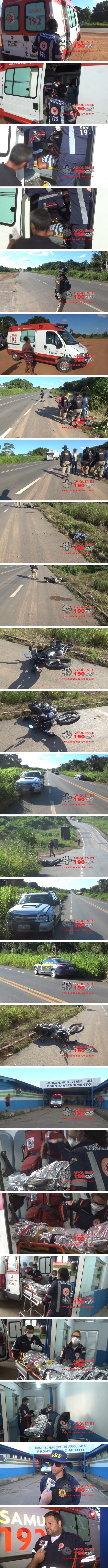 Na tarde desta terça-feira 24/01, a equipe de socorro do Serviço de Atendimento Móvel de Urgência recebeu uma informação de populares relatando que na BR-364, entrada de Cacaulândia, havia acontecido um acidente de trânsito e um motociclista estava ferido. De imediato, os socorristas se deslocaram ao endereço citado, sendo que antes de chegar ao destino, a Unidade de Suporte Avançado (USA) se deparou com uma ambulância conduzindo a vítima para Ariquemes. Os socorristas do SAMU com o auxílio dos profissionais que estavam na outra ambulância realizaram o translado da vítima para a USA. Dentro da Unidade, os socorristas prestaram atendimento ao motociclista que apresentava fraturas na perna esquerda, no fêmur e tíbia, além de um traumatismo crânioencefálico. A vítima foi conduzida ao Pronto Socorro do Hospital Regional para receber atendimento médico especializado. A Polícia Rodoviária Federal (PRF) esteve presente no local do acidente, onde ao coletar os dados, os Policiais foram informados que o condutor da motocicleta da marca Honda, modelo Fan de cor preta transitava pela Linha que dá acesso ao Município de Cacaulândia, quando ao adentrar a BR-364 não percebeu a aproximação da caminhonete da marca Chevrolet, modelo S10 de cor prata. O condutor da caminhonete ainda tentou frear, contudo, não houve tempo suficiente acontecendo a colisão. Diante do exposto, a Polícia Rodoviária Federal realizou os registros do acidente para a tomada de providências.