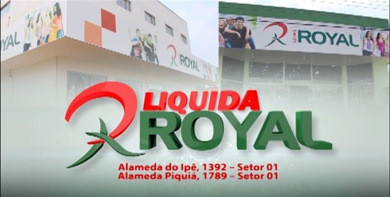 A oportunidade que você esperava chegou! Nesta sexta-feira 03/02, começa a maior oportunidade de economizar, Liquida Lojas Royal. Todo o estoque de calçados e confecções adulto e infantil com 50% de desconto a vista ou 40% a prazo em 30/60/90 dias para pagar. Marcas variadas com preços que você nunca viu, por isso a Loja estará fechada na quinta-feira 02/02 e abrirá na sexta-feira com a grande Liquida Royal de 3 à 11 de fevereiro. Lojas Royal, uma sempre perto de você. Localizadas na Alameda do Ipê, nº 1392 e Alameda Piquiá n º 1789, ambas no Setor 01.