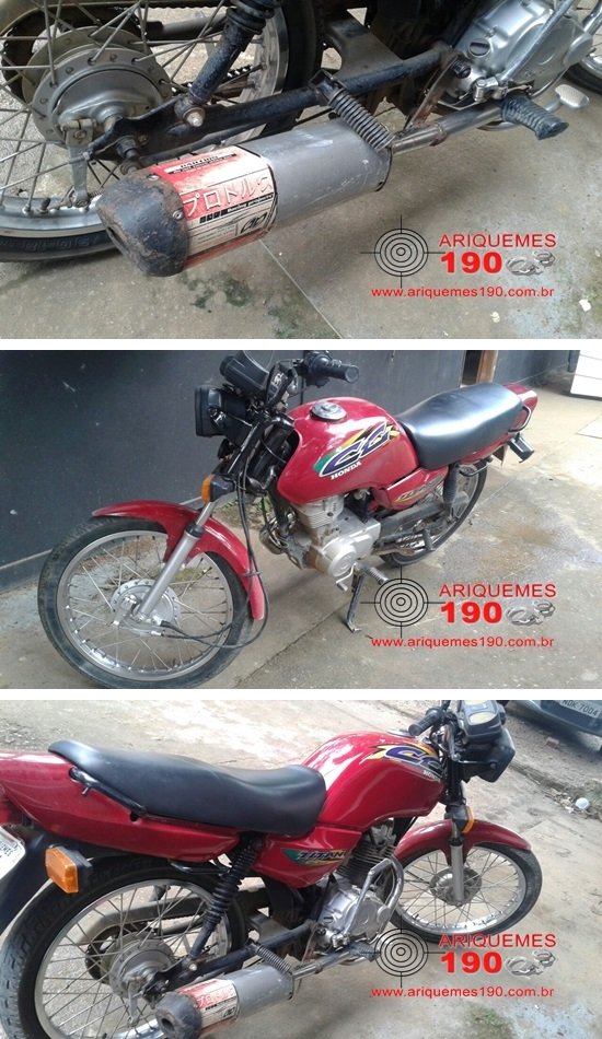 Por volta das 10h30min deste sábado (04/02), a irmã de um jovem que teve sua motocicleta furtada na última quinta-feira (02/02), estava transitando pela Avenida Jamari, no Setor 01, quando em frente a uma loja de abrasivos avistou a moto de seu irmão estacionada. A garota acionou os Policiais Militares: Vagner, Ezequiel e Gilson da Patrulha Bravo, que foram ao local e conduziram a moto à DP, sendo que o condutor foi encontrado minutos mais tarde em uma oficina mecânica, dizendo que um elemento havia deixado a moto para ser pintada. Mediante os fatos a moto e seu proprietário foram apresentados à autoridade plantonista, para ressarcimento do veículo.