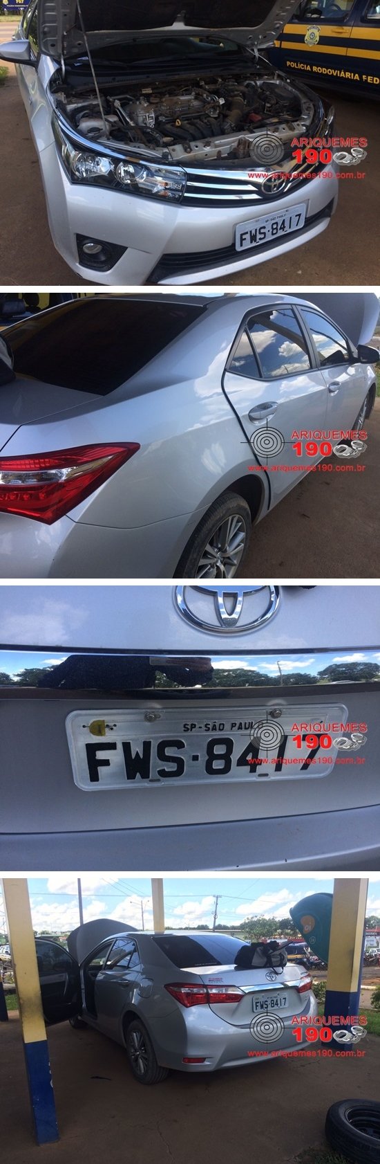Na manhã desta quinta-feira 23/03, a Polícia Rodoviária Federal (PRF), recebeu uma informação via 193, que dava conta que na Av. JK próximo da Delegacia de Polícia Civil de Ariquemes, havia um veículo clonado. A guarnição compareceu no local, onde avistou o veículo da marca Toyota, modelo Corolla de cor prata com placa de São Paulo. Os Policiais convidaram o condutor para fazer uma averiguação mais detalhada junto ao posto localizado no KM-520 da BR-364. Durante a consulta veicular, os PRF’s constataram que o carro tinha placa clonada de um veículo que está em situação legal no Estado de São Paulo. Foi constatado também que o referido veículo possui uma restrição de furto no Estado da Bahia. Diante do exposto, os Policiais apreenderam o carro e conduziram juntamente com o condutor à Delegacia de Polícia Civil de Ariquemes, para a tomada das medidas que requerem o caso.