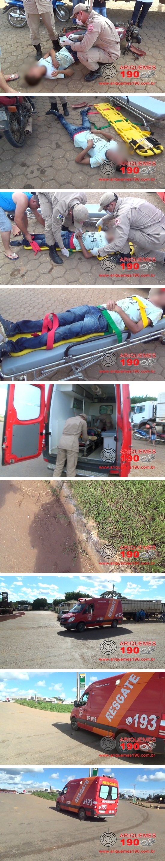 Durante a tarde deste sábado 08/04, a guarnição do Corpo de Bombeiros foi acionada a comparecer no Km-515 da BR-364 no perímetro urbano de Ariquemes, pois segundo o comunicante, ali teria um motociclista caído após sofrer um acidente. Imediatamente, os Militares compareceram no local, onde constataram a veracidade da informação, se deparando com um homem caído apresentando escoriações. Informações coletadas no local dão conta que o motociclista ao passar por uma descida, colidiu com um meio fio, perdeu o controle da direção e veio a sofrer a queda. Após receber atendimento no local, a vítima foi conduzida ao pronto socorro para receber atendimento médico especializado.