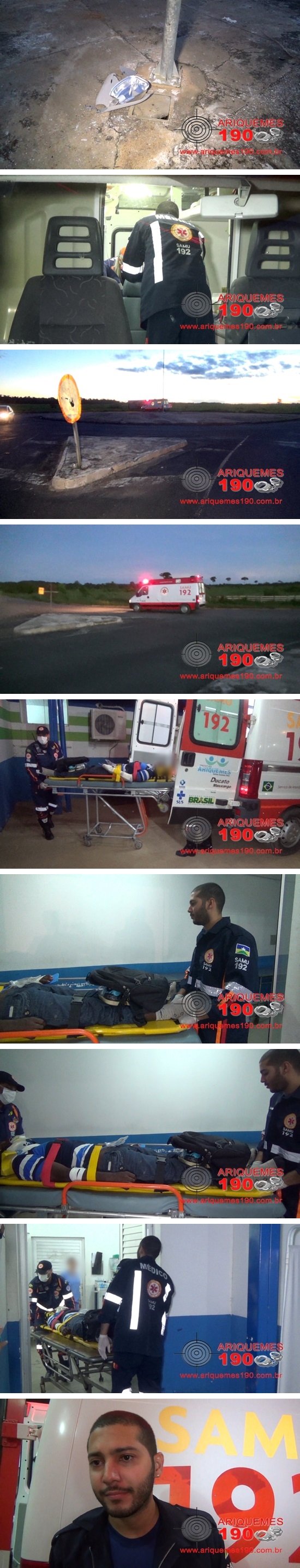 ARIQUEMES: Motociclista fica ferido após colidir com poste no trevo da entrada de Alto Paraíso