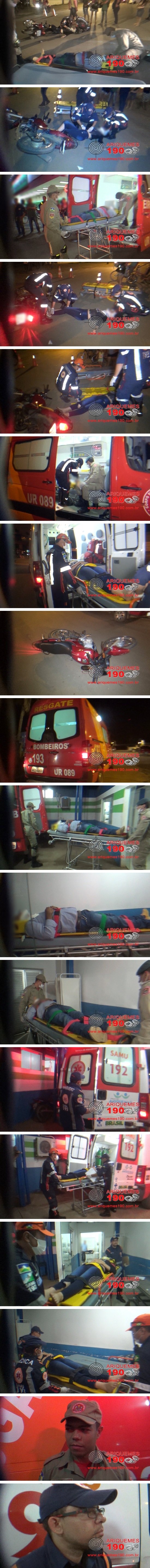 Na noite desta segunda-feira 10/04, foi registrado um acidente na Alameda Brasília, Setor 03, onde uma moça e um homem ficaram feridos. As equipes de socorro do Serviço de Atendimento Móvel de Urgência (SAMU) e do Corpo de Bombeiros compareceram no local, onde prestaram atendimento as vítimas. Informações de populares dão conta que o acidente aconteceu em uma colisão envolvendo um carro e uma moto, onde os ocupantes da moto ficaram feridos. Após serem imobilizadas, as vítimas foram conduzidas ao hospital regional para receber atendimento médico especializado.