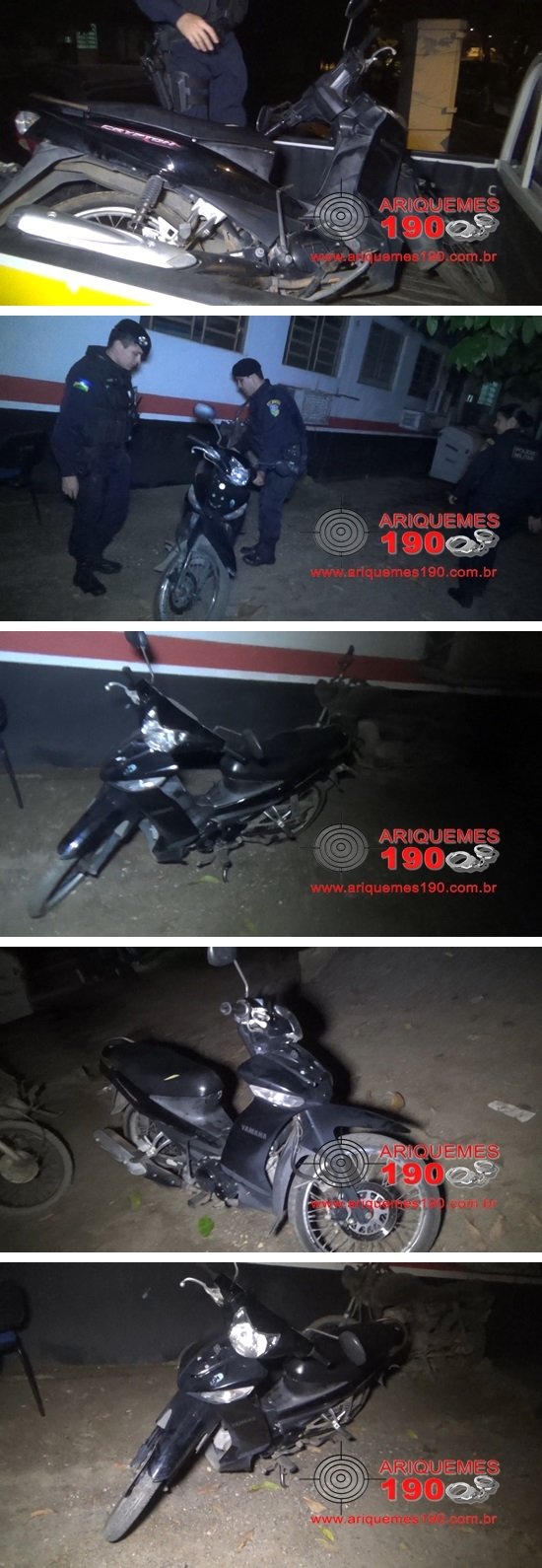 Por volta das 21h10min deste sábado, 06/05, a guarnição da Policia Militar composta pela Soldada Erika e Soldados Cleberson e Welkley, foi acionada via Central de Operações a comparecer na 2ª Rua do Setor 08, pois segundo informações teria um veículo abandonado. Ali chegando, os Militares se depararam com a motoneta marca Yamaha modelo Crypton de cor preta placa OHR 7020 de Ariquemes-RO. Ao realizar a consulta veicular foi constatado que a motoneta se tratava de produto de roubo. Diante do exposto, a motoneta foi conduzida até a Delegacia de Policia Civil onde a Ocorrência 1465/17 foi registrada para que posteriormente o veículo seja restituído ao proprietário.