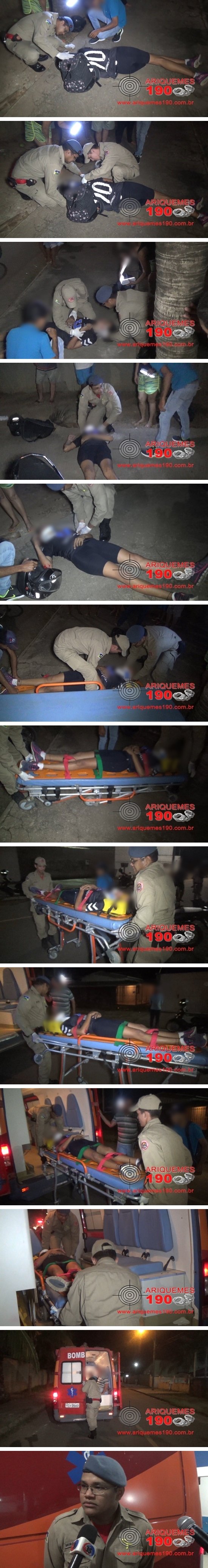 Na noite desta segunda-feira 08/05, os Bombeiros Miranda e Ismalen realizavam atendimento de um acidente de trânsito na Rua Mato Grosso no Setor 05 de Ariquemes, quando foram informados por populares que ali perto havia acontecido outro acidente de trânsito. Os Militares foram até o local indicado pelo comunicante, sendo que ali chegando, se depararam com uma jovem inconsciente e apresentando escoriações. Imediatamente, a vítima foi imobilizada e conduzida ao pronto socorro para receber atendimento médico especializado. Informações de populares dão conta que a vítima estava na garupa da motocicleta do namorado, quando em dado momento o condutor acabou sofrendo uma queda fazendo com que a garota batesse a cabeça e ficasse inconsciente. Em entrevista para o Programa Bronca da Pesada, o Bombeiro Miranda relatou que a moça também apresentava suspeita de fraturas que o exame de raio-x poderá confirmar.