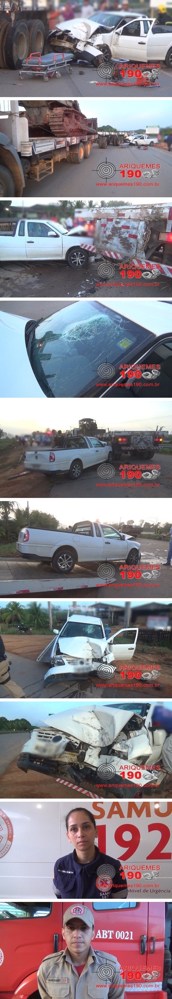 No início da manhã desta segunda-feira 22/05, as equipes de socorro do Serviço de Atendimento Móvel de Urgência (SAMU) e do Corpo de Bombeiros, foram acionadas a comparecer na BR-364 de Ariquemes sentido Monte Negro, pois segundo informações, no local havia acontecido um acidente de trânsito com vítima presa em ferragens. Imediatamente, foi feito o deslocamento, sendo que ali chegando, os socorristas do SAMU instabilizaram a vítima, em seguida, os Bombeiros utilizando de um expansor retiraram o condutor das ferragens. Informações colhidas no local dão conta que a vítima conduzia uma Pick-up da marca Volkswagen, modelo Saveiro de cor branca, quando em dado momento, houve uma colisão na julieta de um caminhão. A frente da Pick-up ficou destruída, felizmente a vítima não teve ferimentos graves e foi conduzida ao pronto socorro para receber atendimento médico especializado.