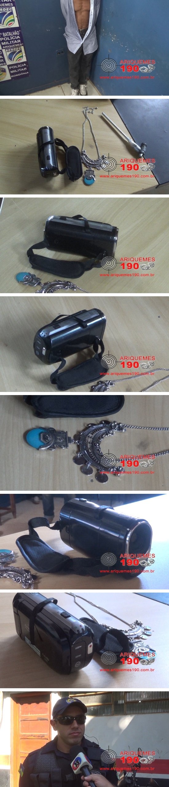Na manhã desta quarta-feira 24/05, a guarnição da Polícia Militar foi acionada a comparecer em uma residência no Setor 06 de Ariquemes, onde um morador teria se deparado com um elemento dormindo na área de sua residência. Imediatamente, a guarnição composta pelos PM’s Barrozo, Apontes e Jonatas fez o deslocamento, sendo que ali chegando, os Militares acordaram o indivíduo, que ao ser indagado quanto ao que fazia no local, o mesmo relatou que não sabia. Ao lado do meliante estavam vários objetos e alimentos furtados do interior da residência. Os Militares constataram que para invadir a casa, o marginal teria levantado a cerca elétrica e pulado um muro alto. Com o elemento também foi encontrada uma câmera filmadora que o marginal não soube explicar a procedência. Diante do exposto, o infrator foi conduzido e apresentado na Delegacia de Polícia Civil de Ariquemes, onde foi registrado o Boletim de Ocorrência Policial (BOP), para a tomada das providências que o caso requer.