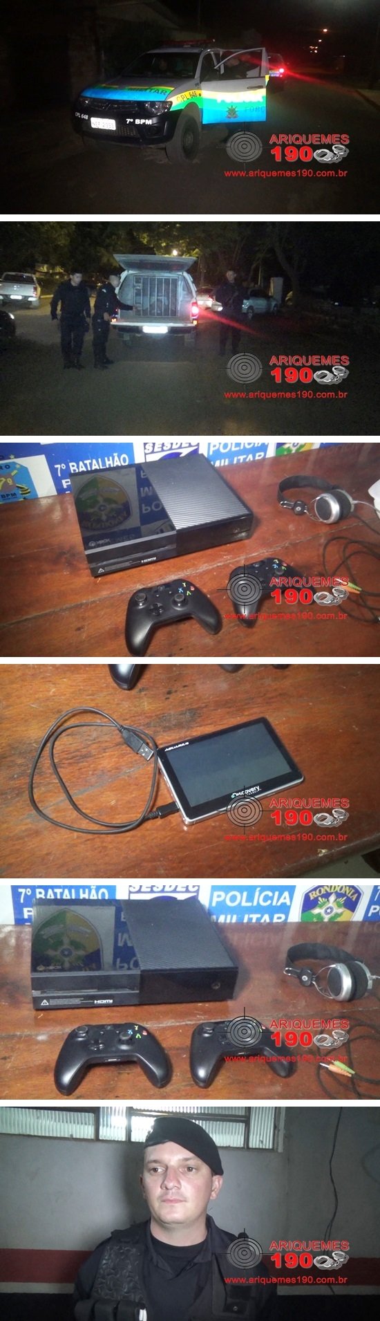 Durante a noite desta quarta-feira 24/05, a guarnição da Força Tática recebeu a informação de um furto em uma residência na Avenida Rio Branco, no Jardim das Palmeiras. Em contato com a vítima, a mesma relatou que foram subtraídos um vídeo game X-Box com dois controles, um boné branco, um aparelho GPS, um fone de ouvido e uma mochila cinza com preto. Segundo vizinhos, o elemento que pulou o muro usava tornozeleira eletrônica. Os Militares fizeram contato com Agentes Penitenciários da Casa do Albergado, que através de rastreamento, identificaram o albergado que havia invadido a residência. Os Militares foram até a residência do albergado, onde encontraram o elemento e recuperaram os objetos furtados. Diante do exposto, o elemento e os bens, foram conduzidos e apresentados na Delegacia de Polícia Civil de Ariquemes, onde foi registrado o Boletim de Ocorrência Policial (BOP), sob n°81804/2017, para a tomada das providências que o caso requer.